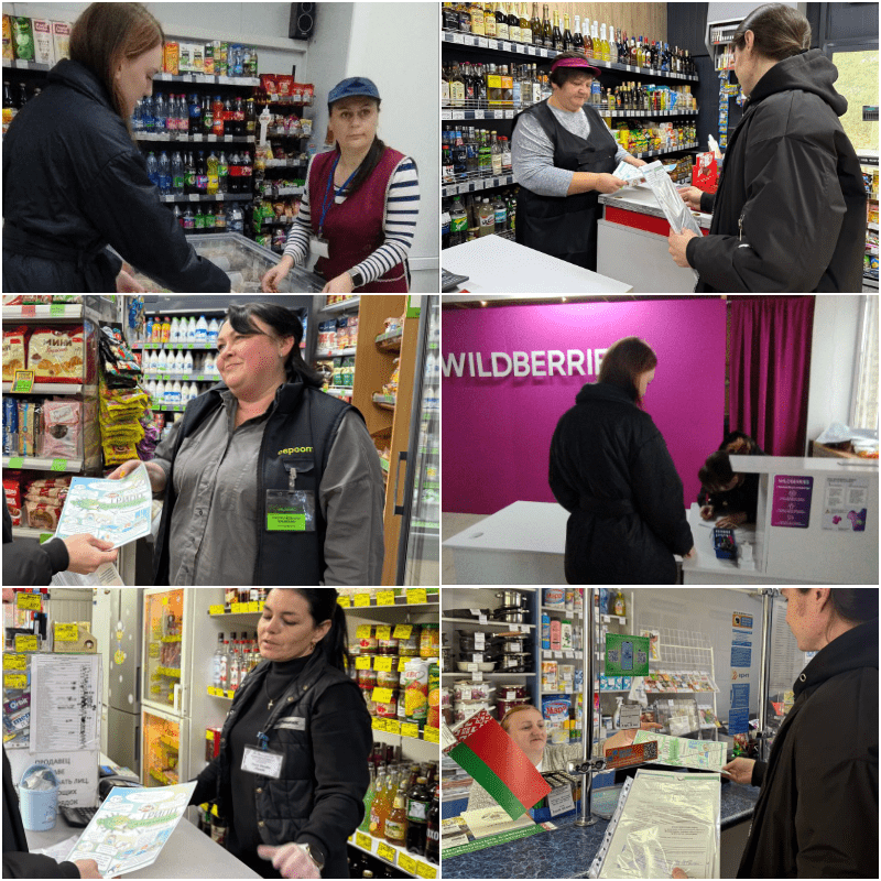 Специалистами «Гомельский районных ЦГЭ» помощниками врача-гигиениста Шаройкиным Денисом Александровичем и Богданович Алиной Сергеевной проведена информационно-образовательная работа по теме: «Профилактика гриппа и COVID-19» на объектах торговли: